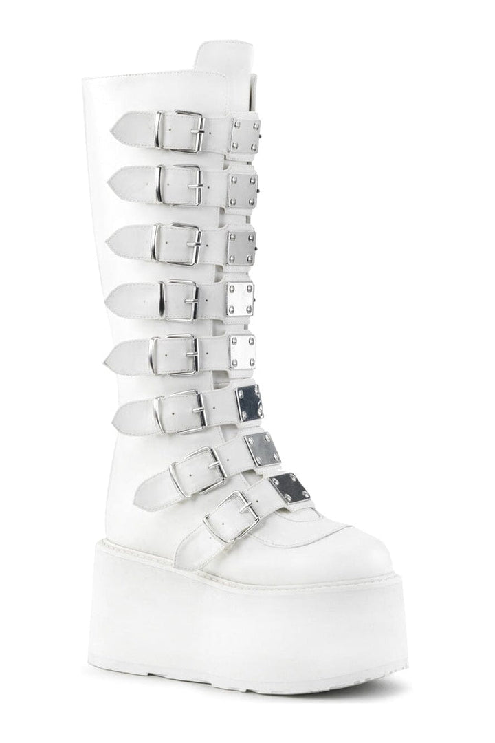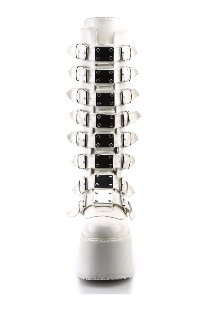 3 1/2" Platform Knee High Boot with eight Buckle Straps, Back Metal Zipper