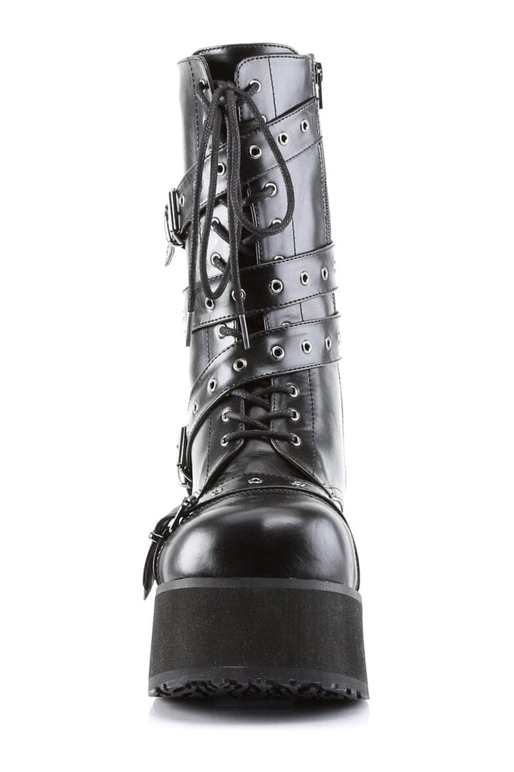 3 1/4" Platform Goth Punk Calf Boot with Wrap Around Straps