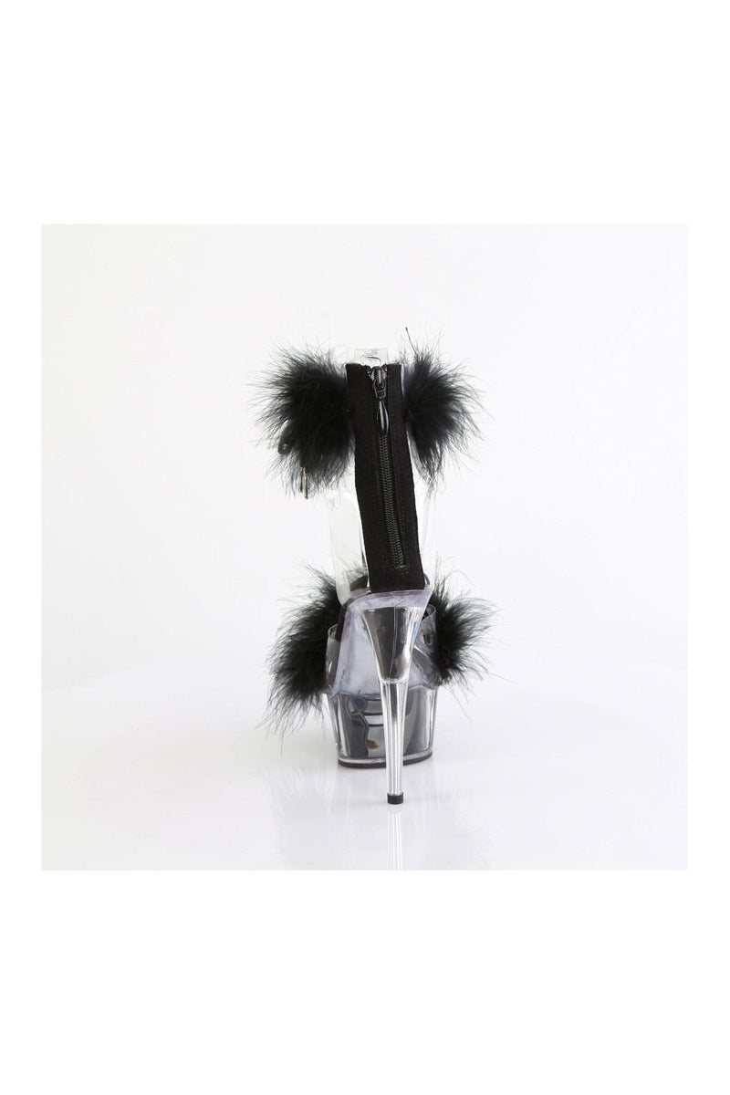 6" Heel, 1 3/4" Platform Marabou Fur Ankle Cuff Sandal, Back Zipper