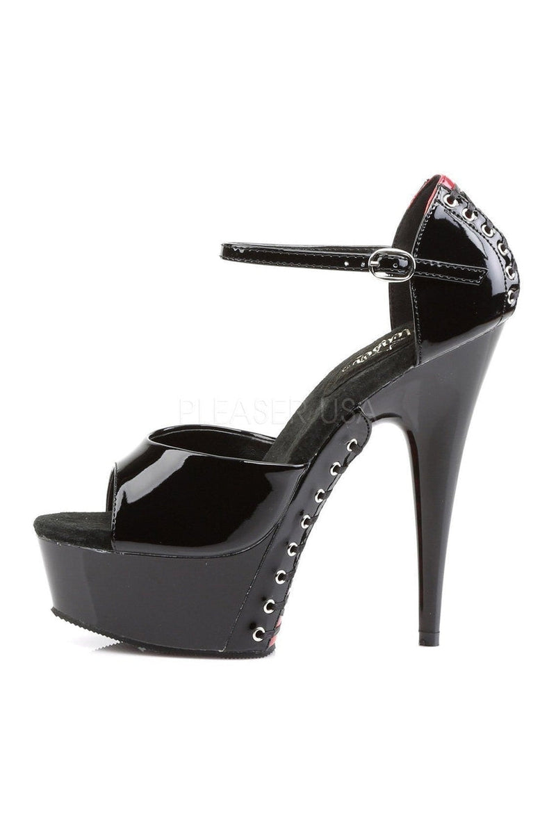 6" (15.2cm) Stiletto Heel 1 3/4" (4.5cm) Platform Peep Toe Close Back Sandal with Heel and Platform Lace Detail
