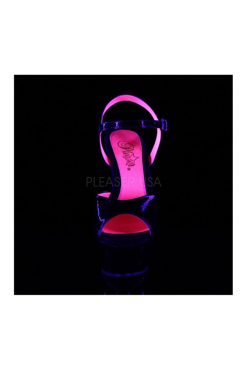 6" (15.25cm) Heel, 1 3/4" (4.5cm) Platform Two Tone Ankle Strap Sandal Featuring Neon Hot Pink UV Blacklight Effect