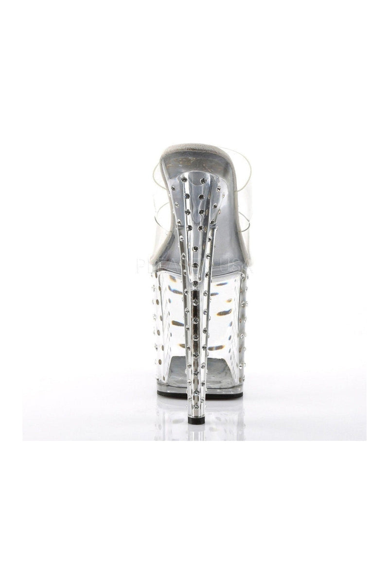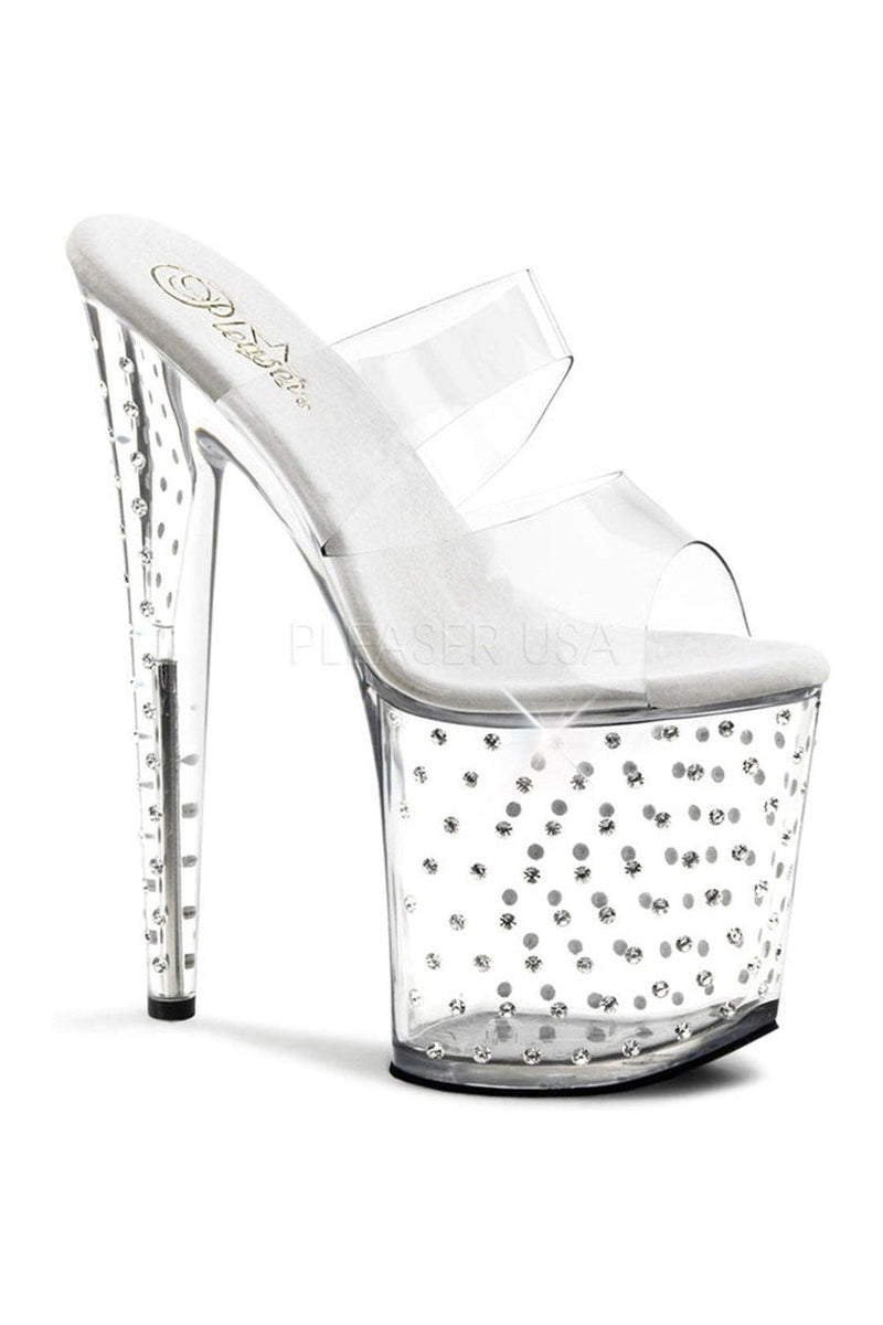 7.5" (19cm) Heel 2 3/4" (7cm) Platform Two Band Slide Featuring Rhinestones Studded Platform