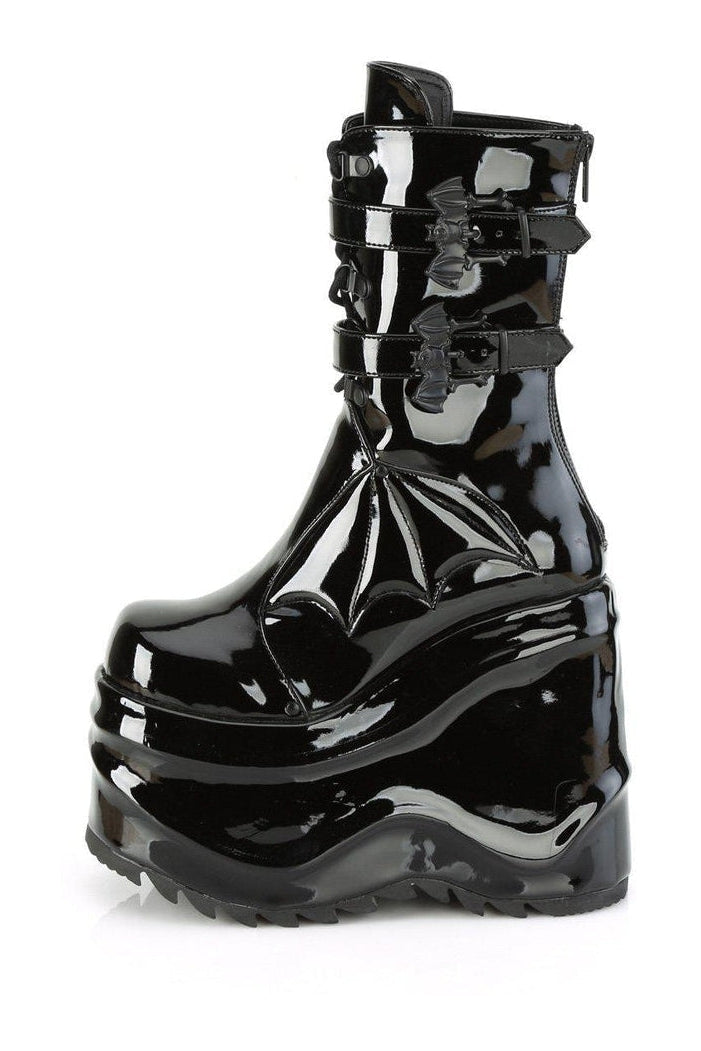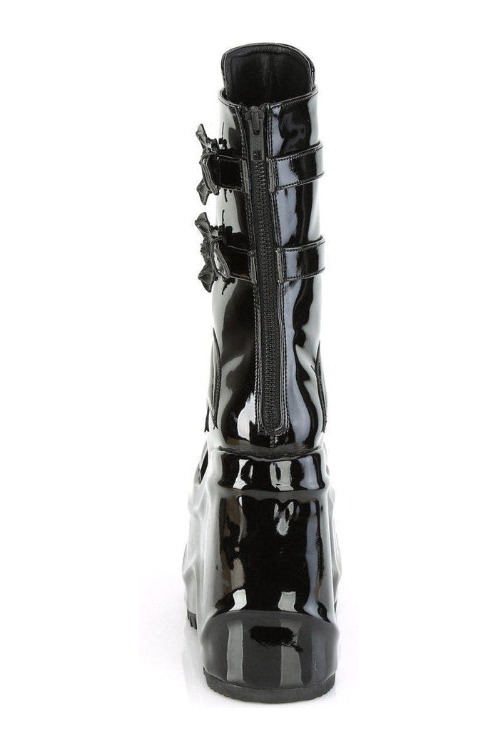 6" Wedge Platform Lace-Up Mid-Calf Boot, Back Metal Zipper