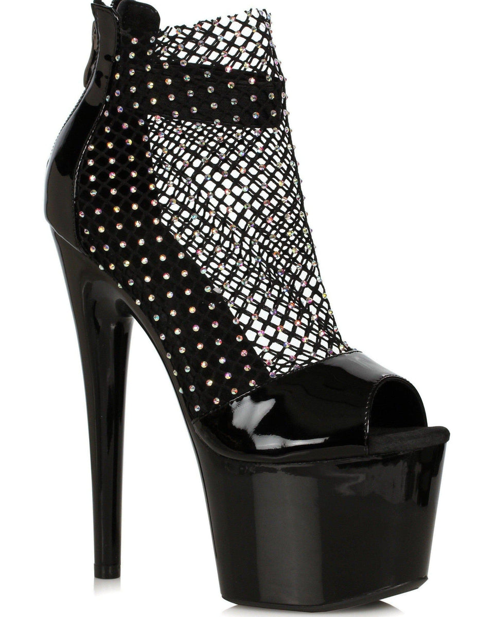 7" Fishnet Rhinestone Ankle Bootie