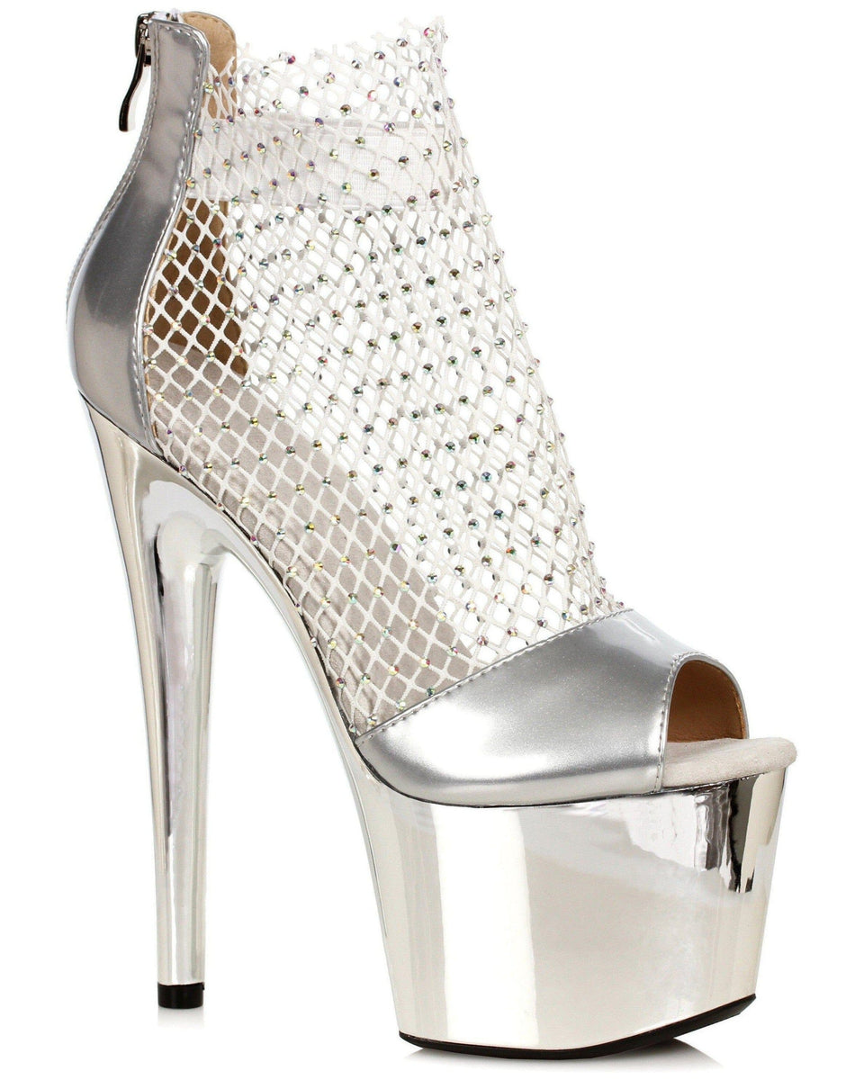 7" Fishnet Rhinestone Ankle Bootie