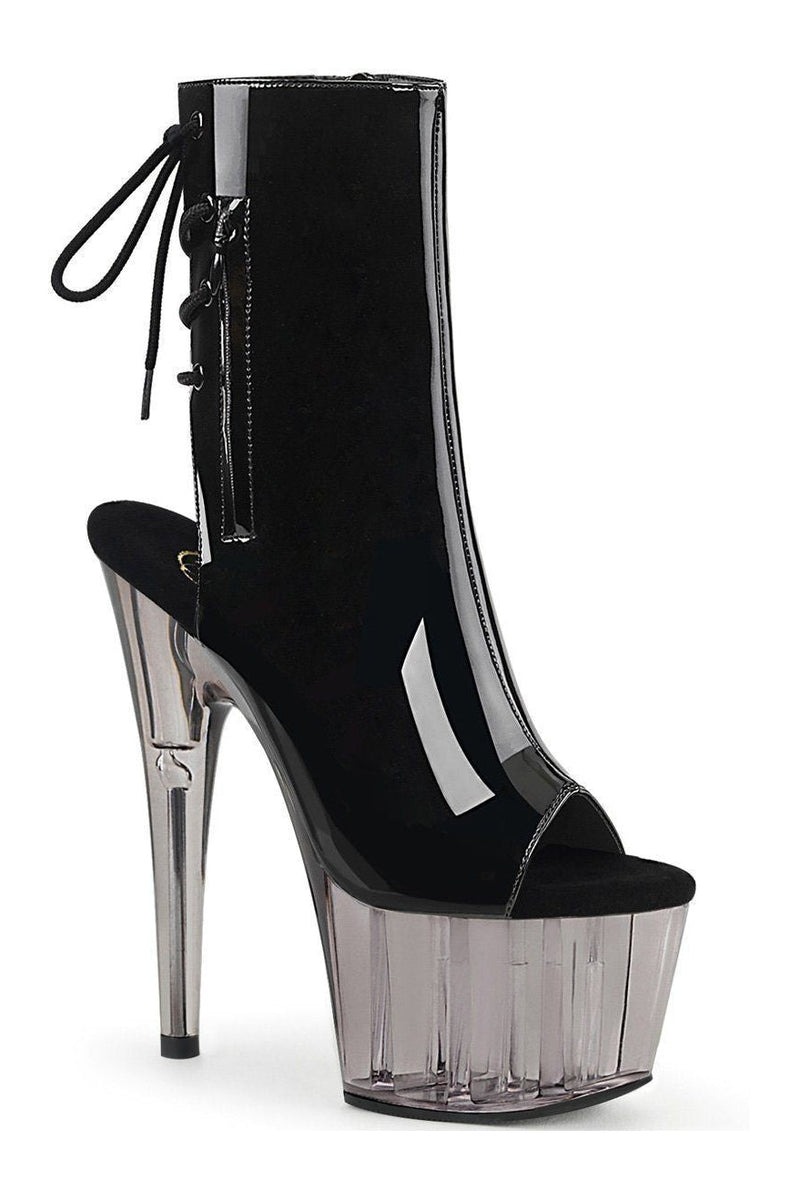 7" Heel, 2 3/4" Tinted Platform Open Toe Ankle Boot, Side Zipper