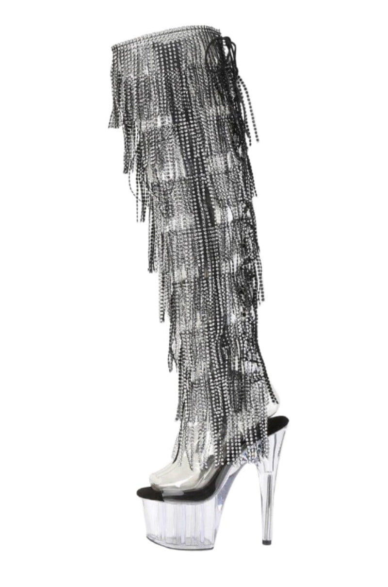 7" Heel, 2 3/4" Platform 8-Layer Fringe Over the Knee Boot, Side Zipper