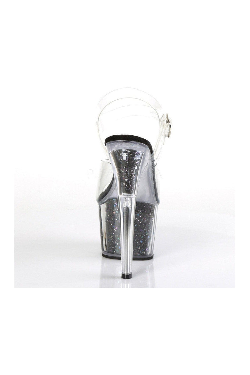 7" (178mm) Heel, 2 3/4" (70mm) Platform Ankle Strap Sandal w/ Confetti Glitter Inserts in the Platform Bottom