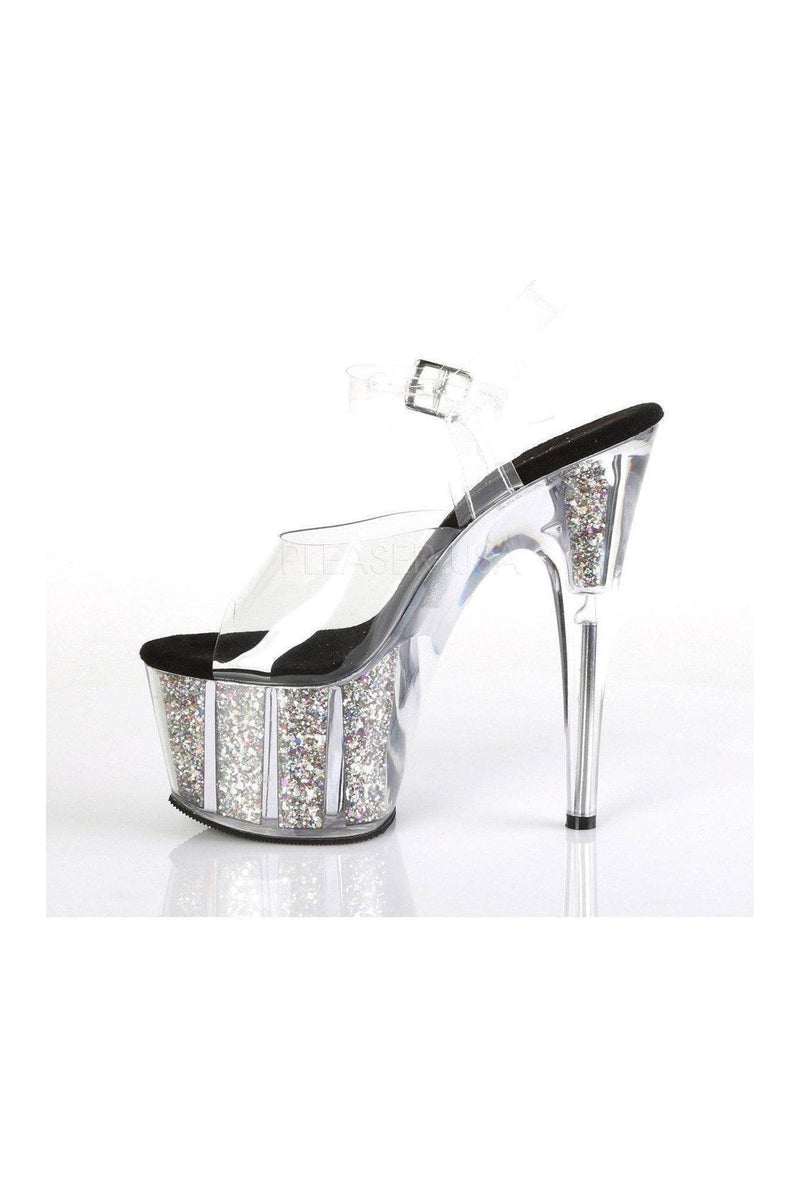 7" (178mm) Heel, 2 3/4" (70mm) Platform Ankle Strap Sandal w/ Confetti Glitter Inserts in the Platform Bottom