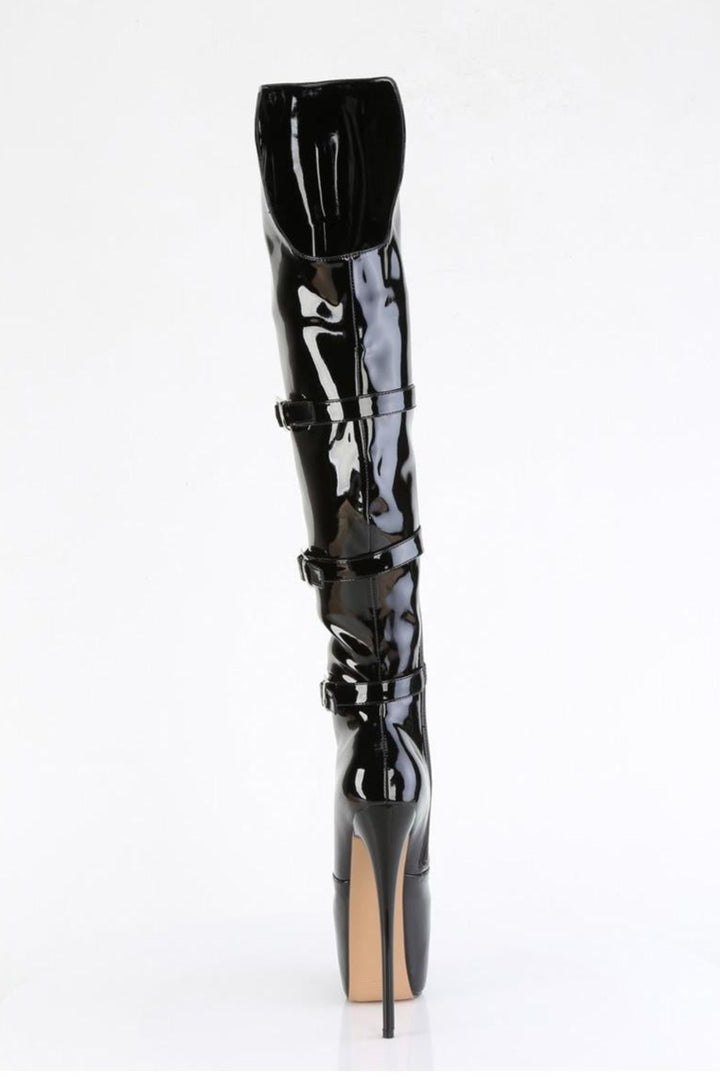 7" Heel, 3" Platform Triple Buckle Strap Over-the-Knee Boot, Side