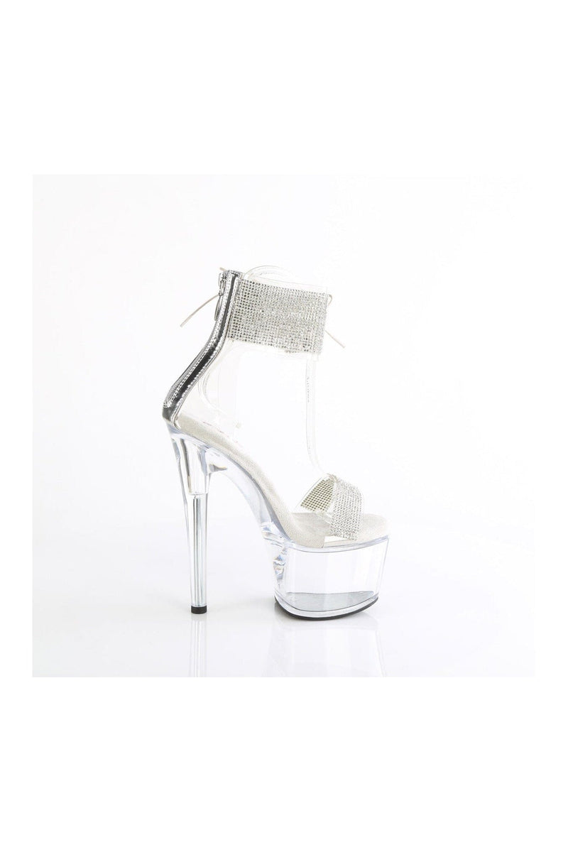7" Heel, 2 3/4" Platform Rhinestones Embellished Ankle Cuff Sandal, Back Zi