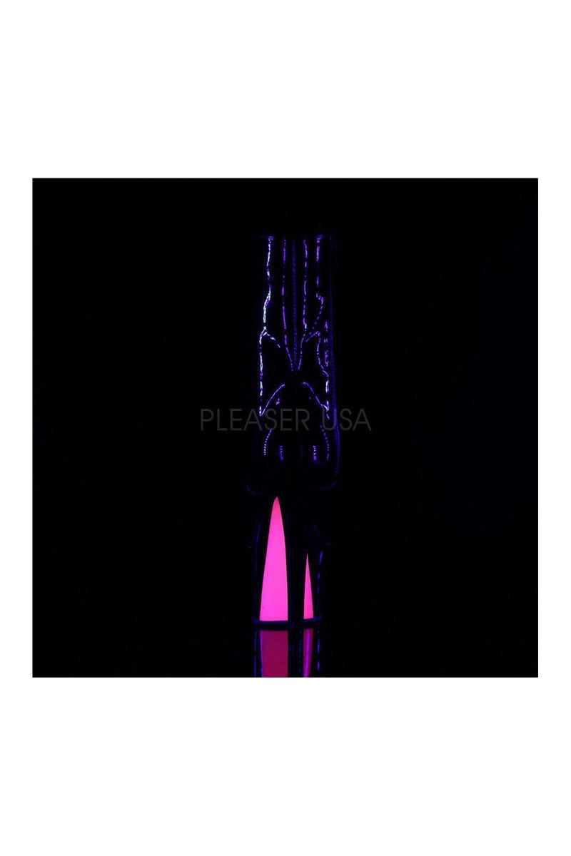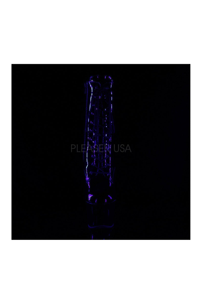 7" (178mm) Heel, 2 3/4" (70mm) Platform Two Tone Lace-up Ankle Boot Featuring Blacklight Sensitive Contrast Color Inner Side of Heel & Underside of the Platform Bottom, Inside Zip Closure