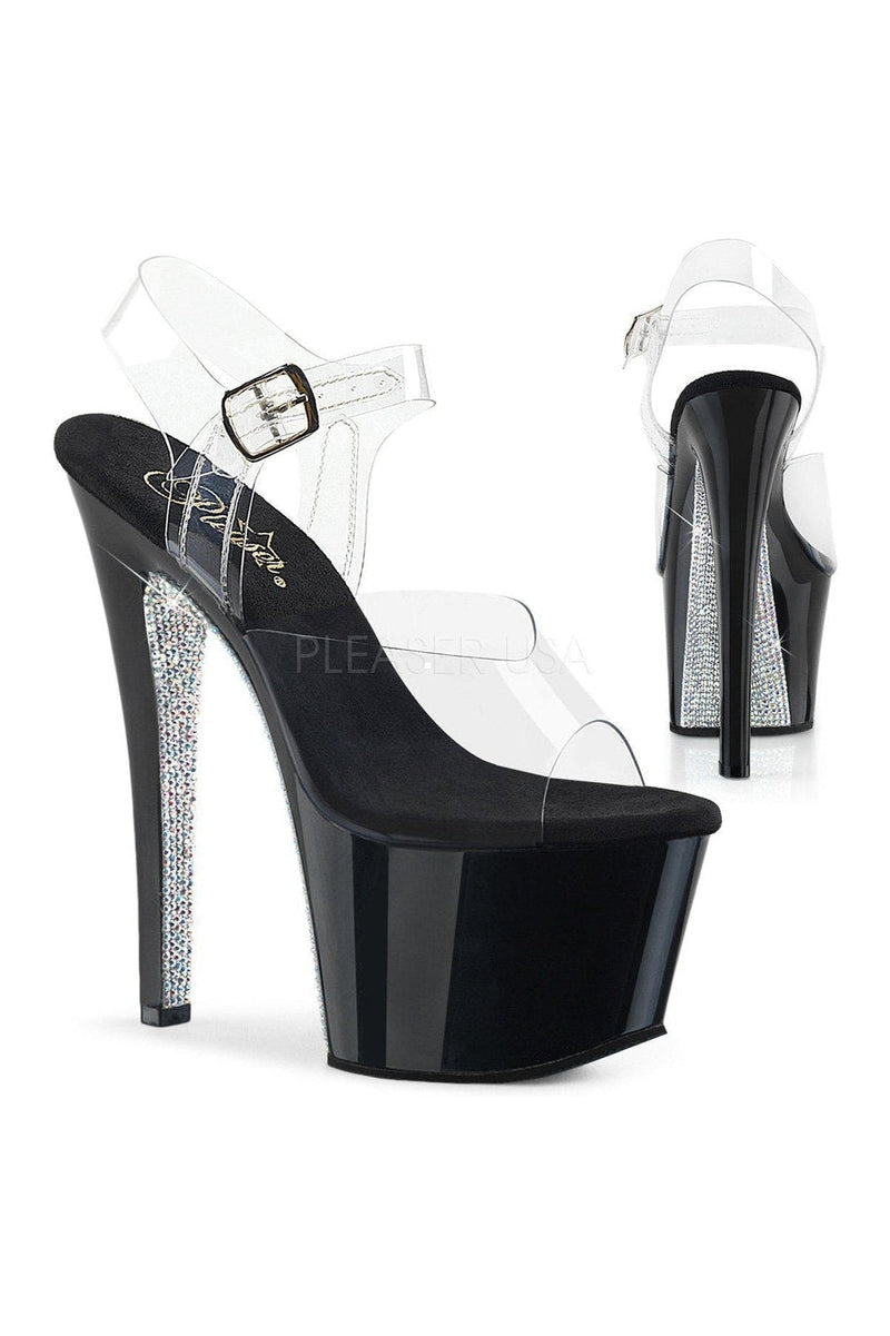 7" (178mm) Heel, 2 3/4" (70mm) Platform Ankle Strap Sandal w/ Contrast Rhinestones on the Platform Bottom