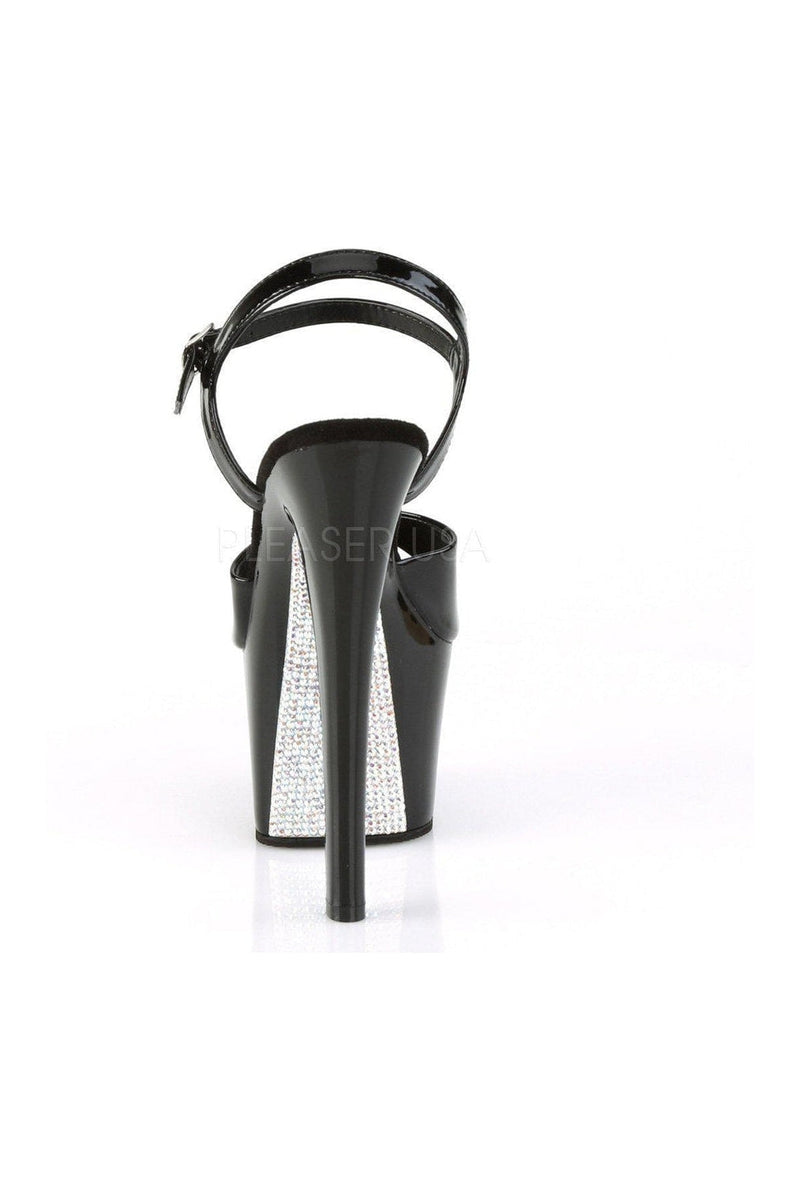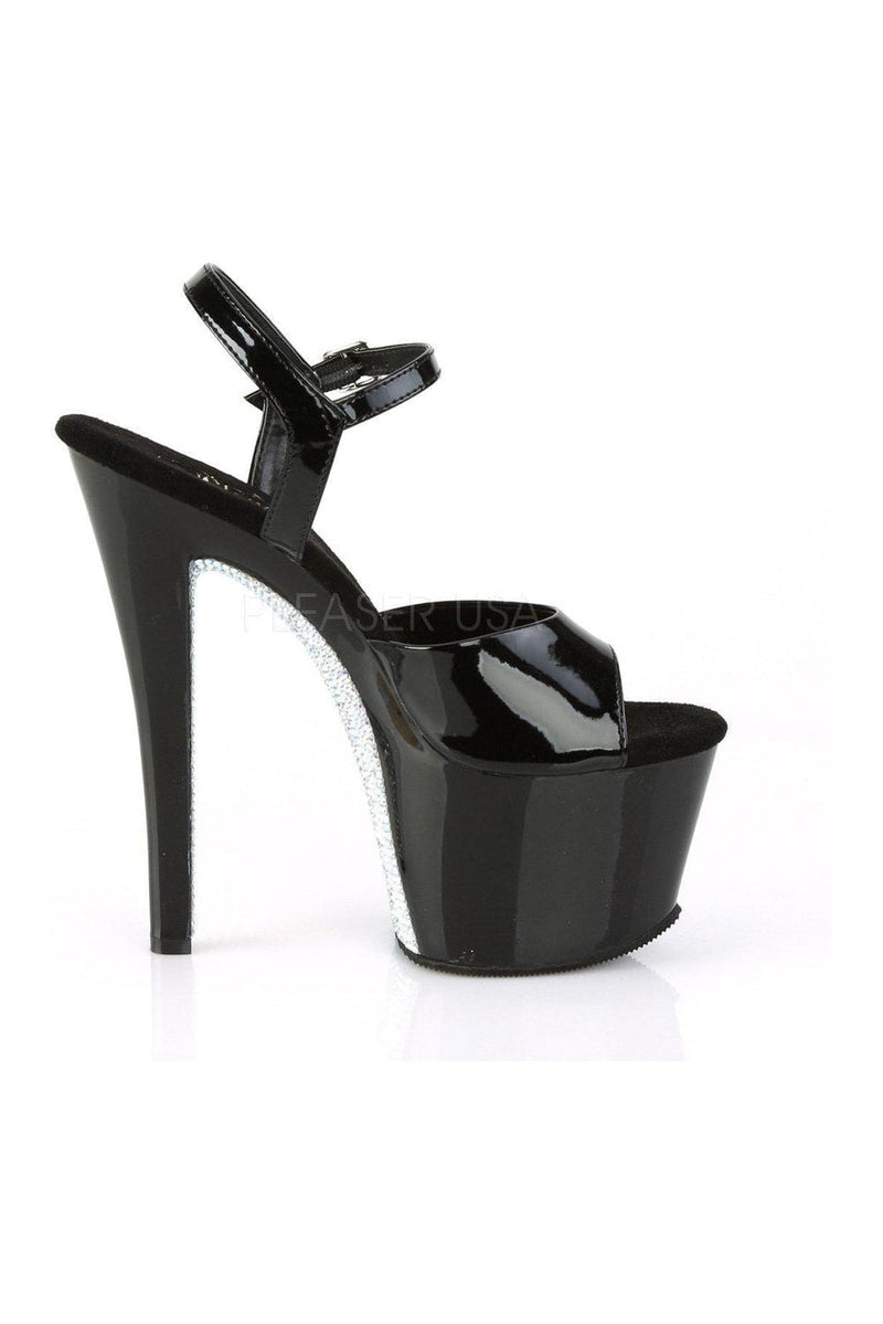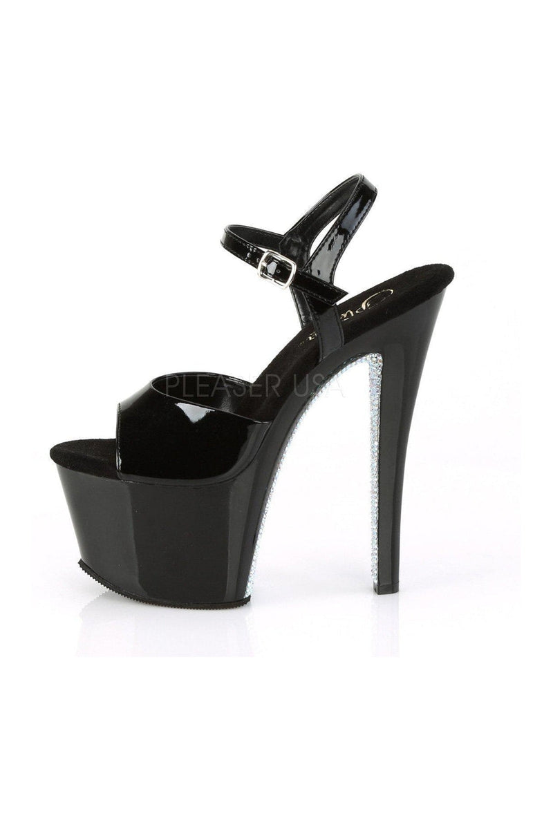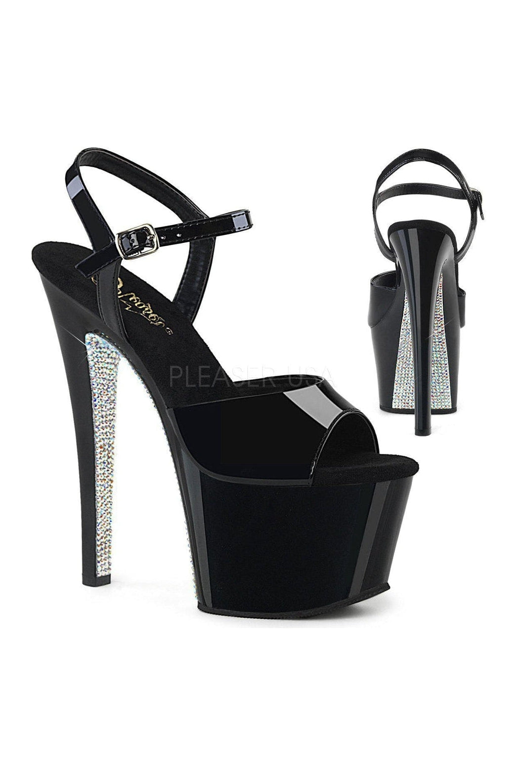 7" (178mm) Heel, 2 3/4" (70mm) Platform Ankle Strap Sandal w/ Contrast Rhinestones on the Platform Bottom