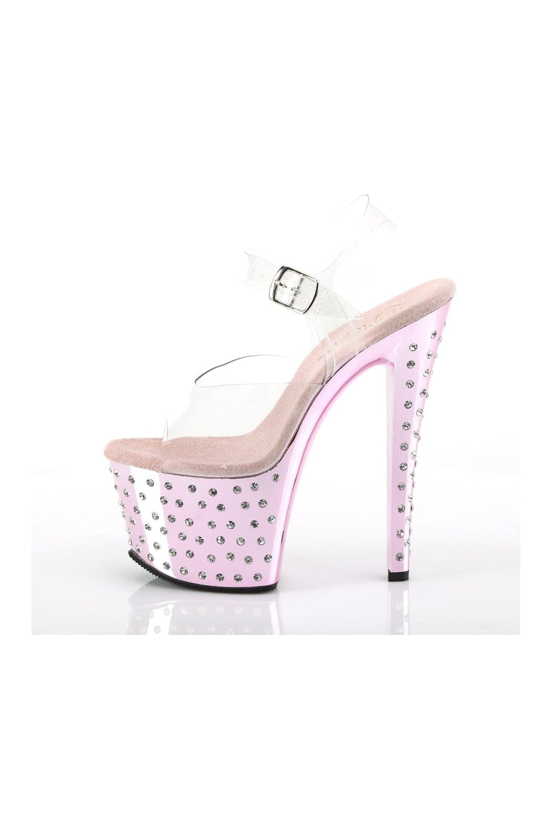 7" Heel, 2 3/4" R/S Studded Chrome Platform Ankle Strap Sandal