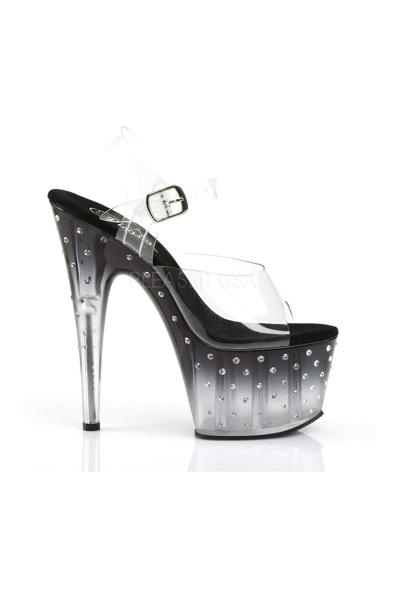 7" (17.8cm) Heel 2 3/4" (7cm) Platform Ankle Strap Sandal Featuring Multi-size Rhinestones Studded on the Outer Side of the Tinted Platform