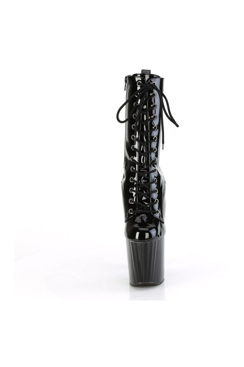 7 1/2" Heel, 3 1/2" Platform Lace-Up Mid Calf Boot, & Side Zipper