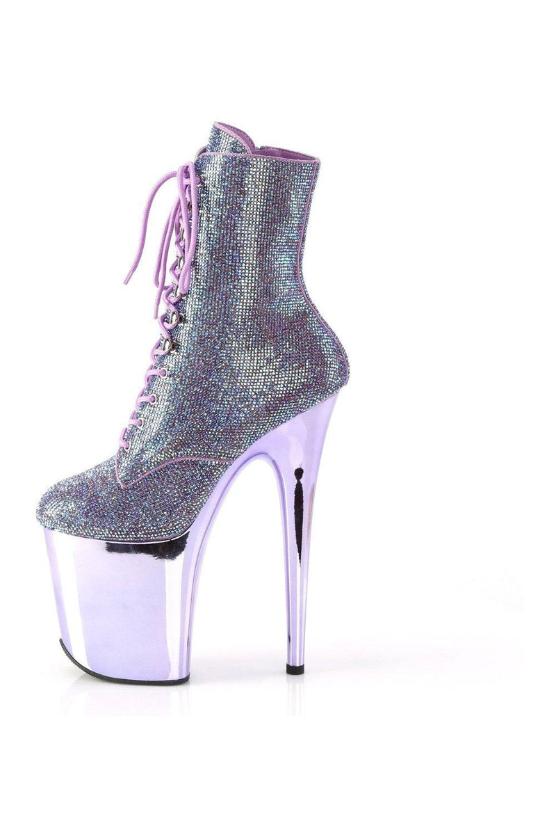 8" Heel , 4" Platform Lace-Up Rhinestone Embellished Ankle Boot, Side Zipper