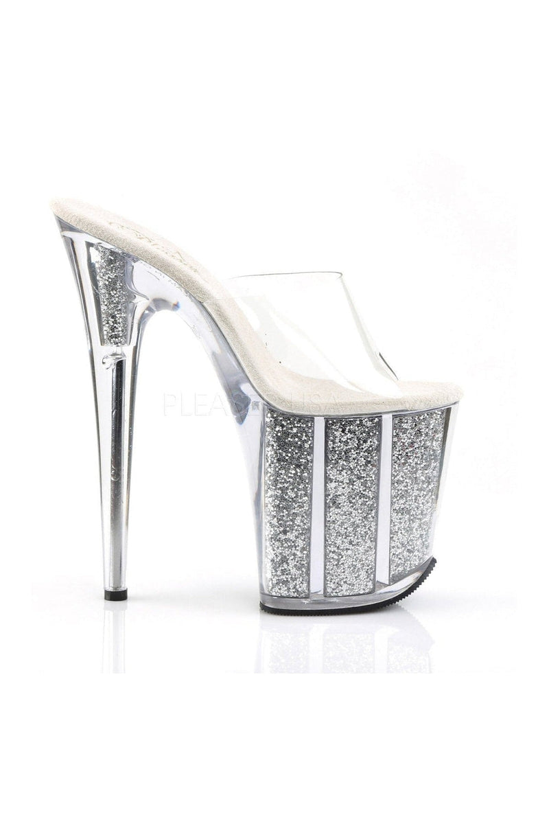 8" (20.3cm) Stiletto Heel 4" (10.2cm) Platform Slide Featuring Glitter-filled Platform
