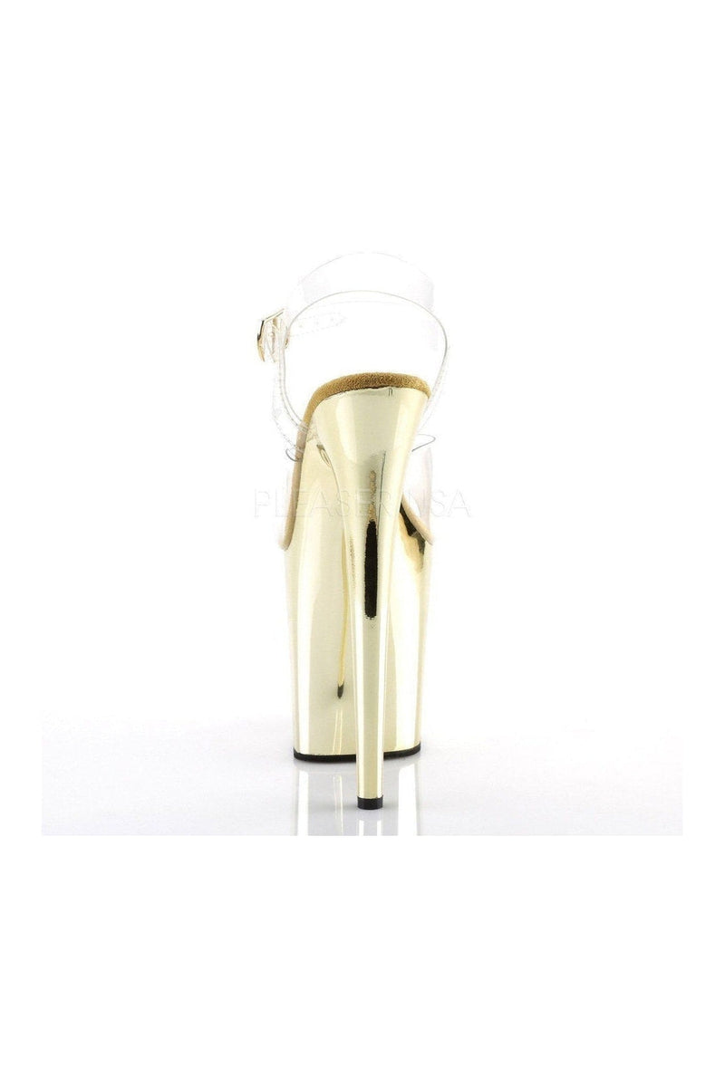 8" (203mm) Heel, 4" (102mm) Platform Ankle Strap Sandal w/ Chrome Plated Platform Bottom