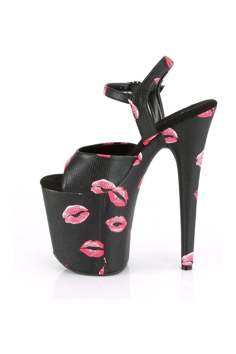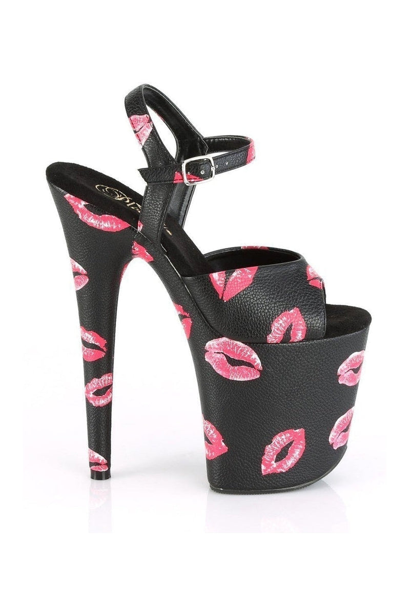 8" Heel, 4" Platform Ankle Strap Sandal w/ Lip Print
