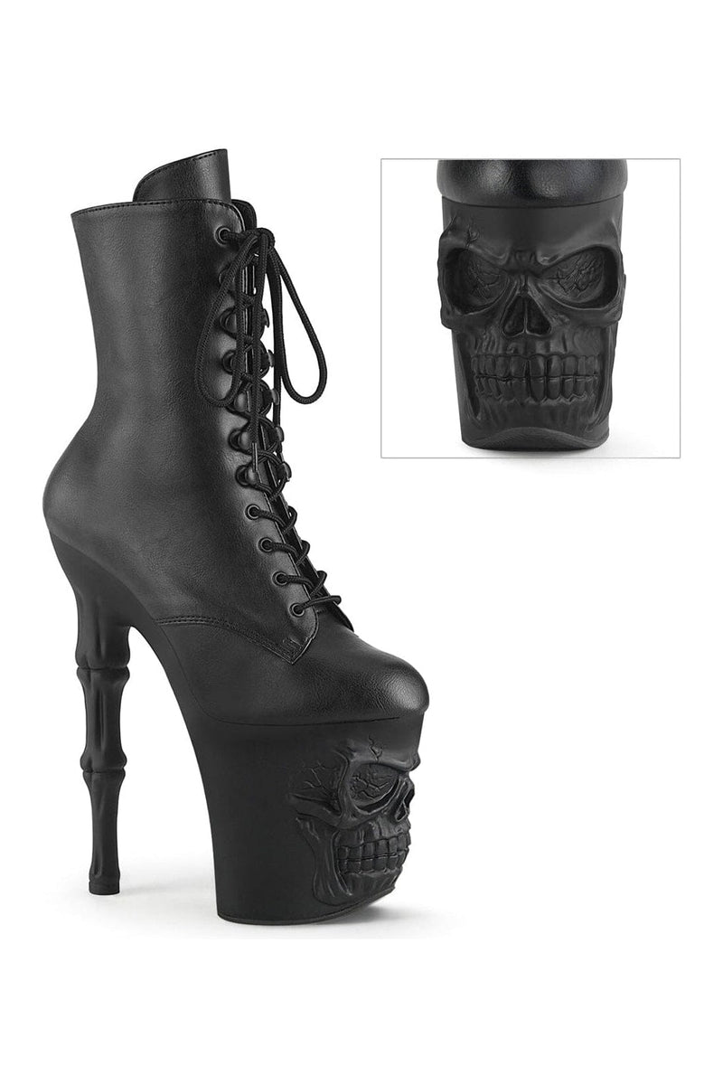 8" Finger Bone Heel, 4" Skull Platform Ankle Boot, In& Side Zipper