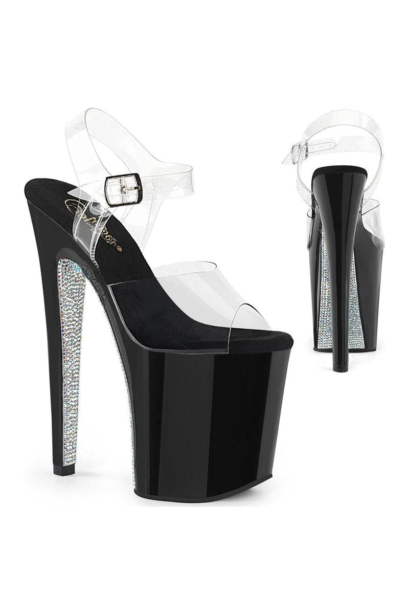 8" Heel, 4" Platform Ankle Strap Sandal w/ Contrast Rhinestones