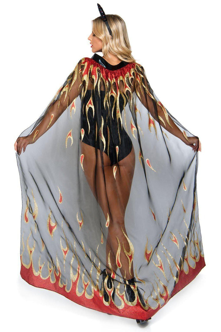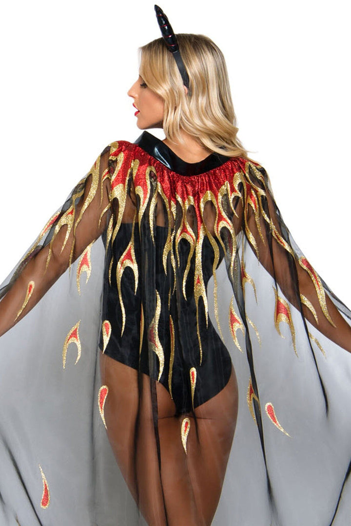 Leg Avenue 2 Piece Sheer glitter flame devil cape and devil horns.