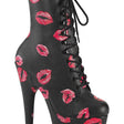 7" Heel, 2 3/4" PF Lace-Up Lips Print Ankle Boot, Side Zip