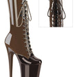 8" Heel, 4" Platform Two Tone Lace-Up Mid Calf Boot, Side Zipper