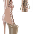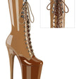 8" Heel, 4" Platform Two Tone Lace-Up Mid Calf Boot, Side Zipper