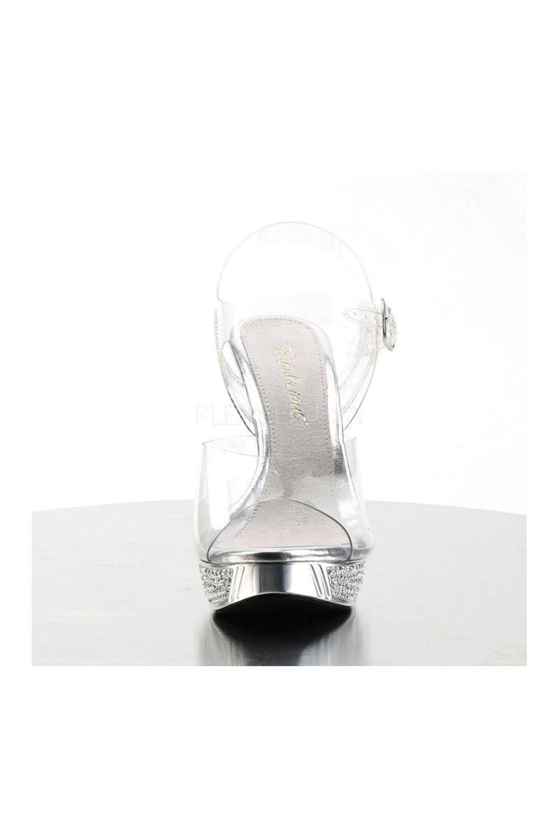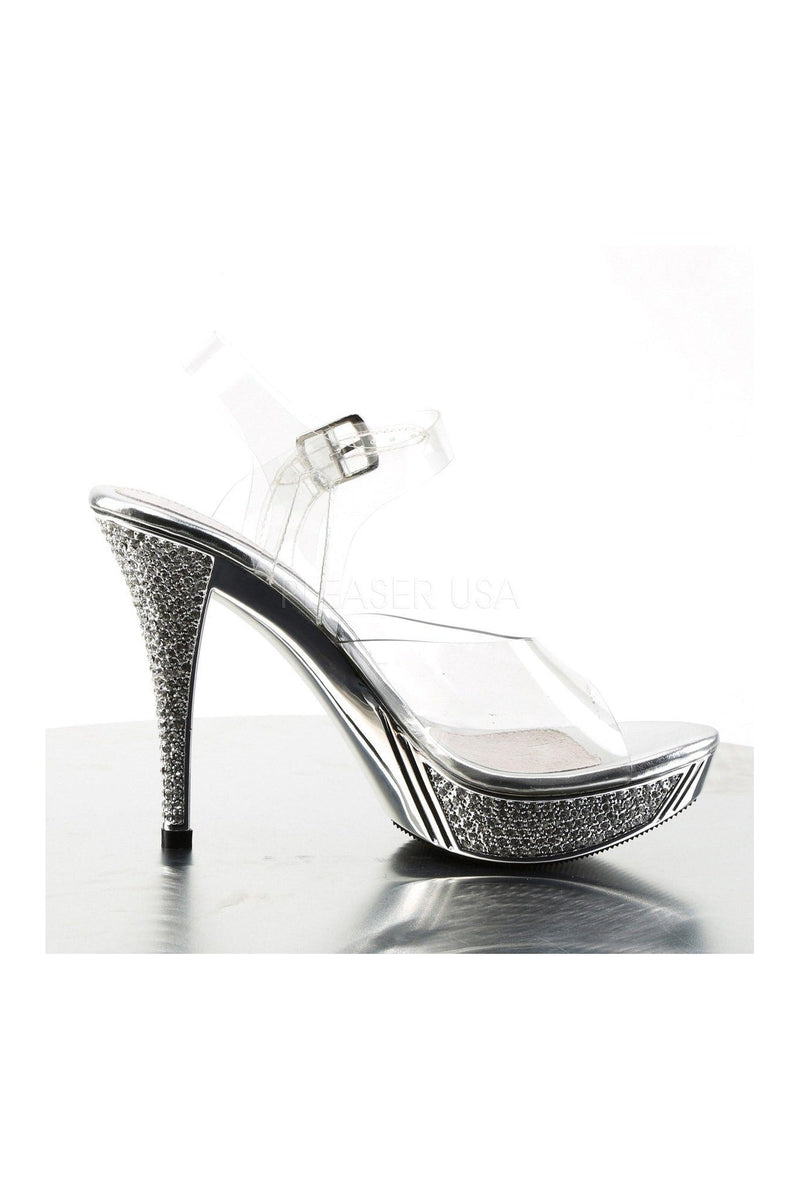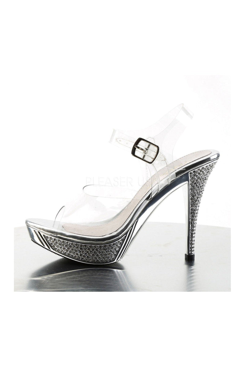 4 1/2" (11.4cm) Heel with 1" (2.5cm) Platform Ankle Strap Sandal Featuring Rhinestone Embellished Heel and Platform