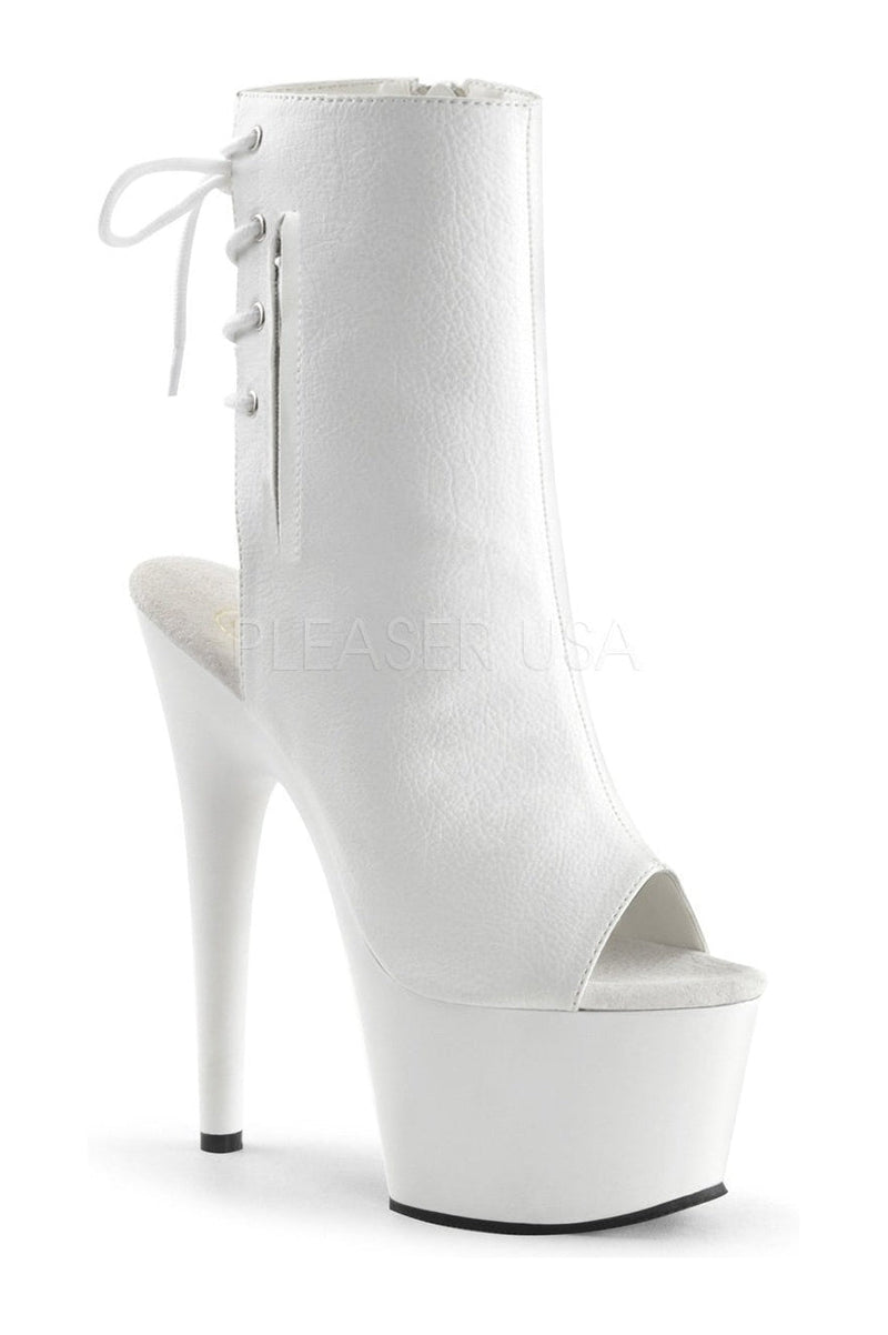 7" (17.8cm) Stiletto Heel 2 3/4" (7cm) Platform Open Toe/Stiletto Heel Back Lace-Up Ankle Boot Inside Zip Closure