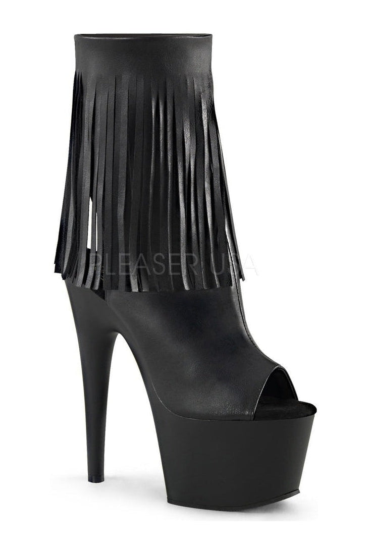 7" (17.8cm) Stiletto Heel 2 3/4" (7cm) Platform Open Toe/Stiletto Heel Fringe Ankle Boot Inside Zip Closure