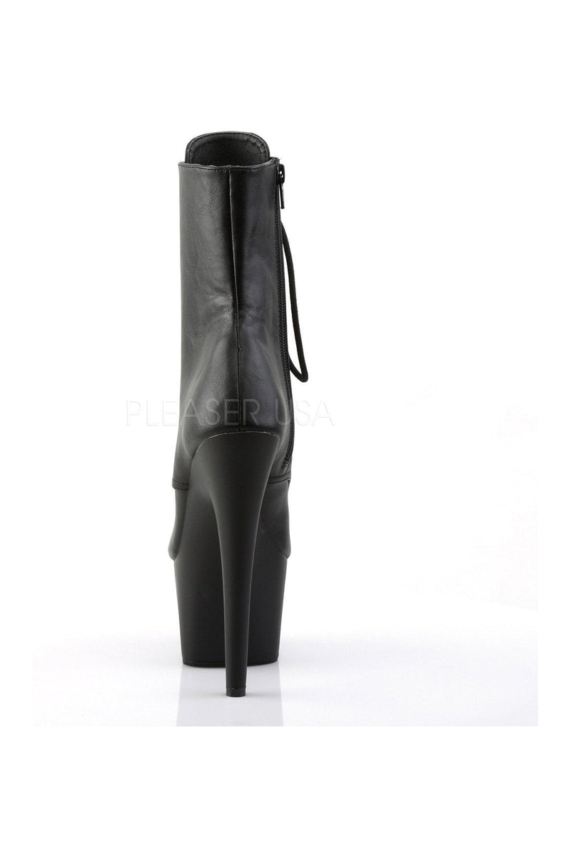 7" (17.8cm) Stiletto Heel 2 3/4" (7cm) Platform Peep Toe Front Lace-Up Ankle Boot Inside Zip Closure