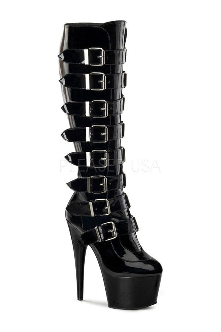 7" (17.8cm) Stiletto Heel 2 3/4" (7cm) Platform Knee Boot with Buckles & Full Inner Side Zipper