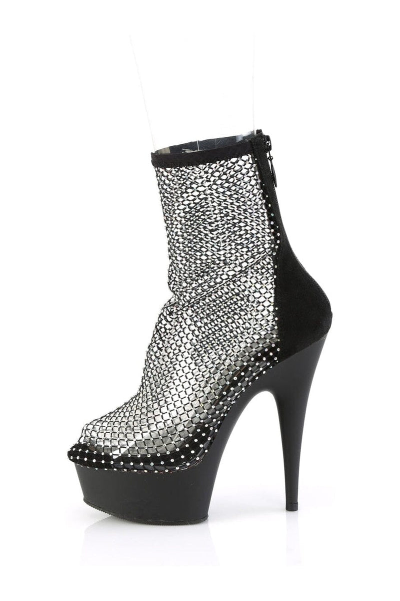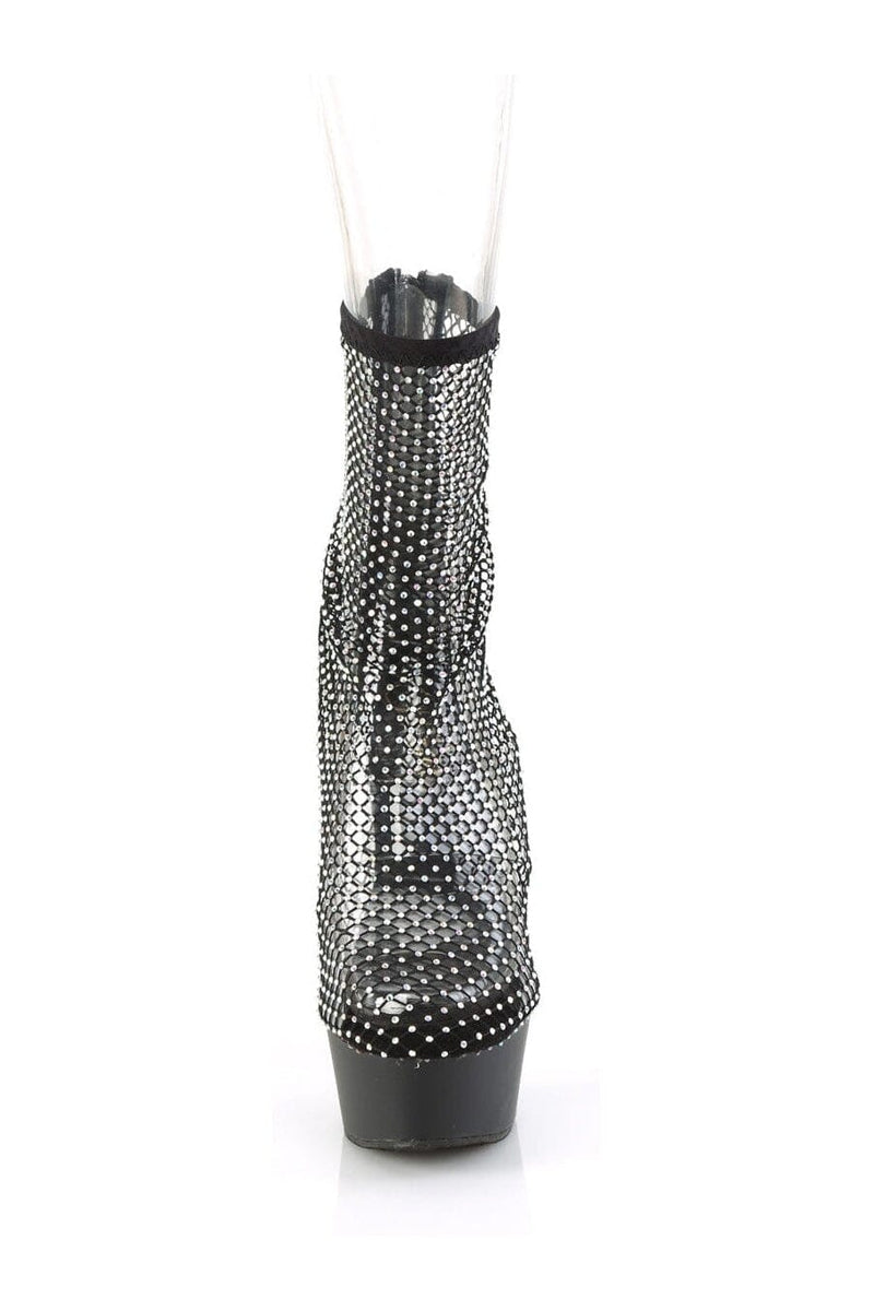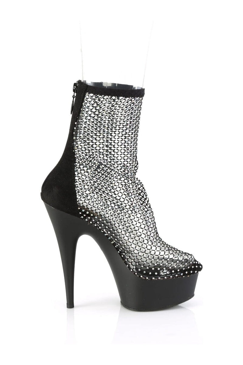 6" Heel, 1 3/4" Platform Rhinestone Mesh Ankle Boot, Back Zipper