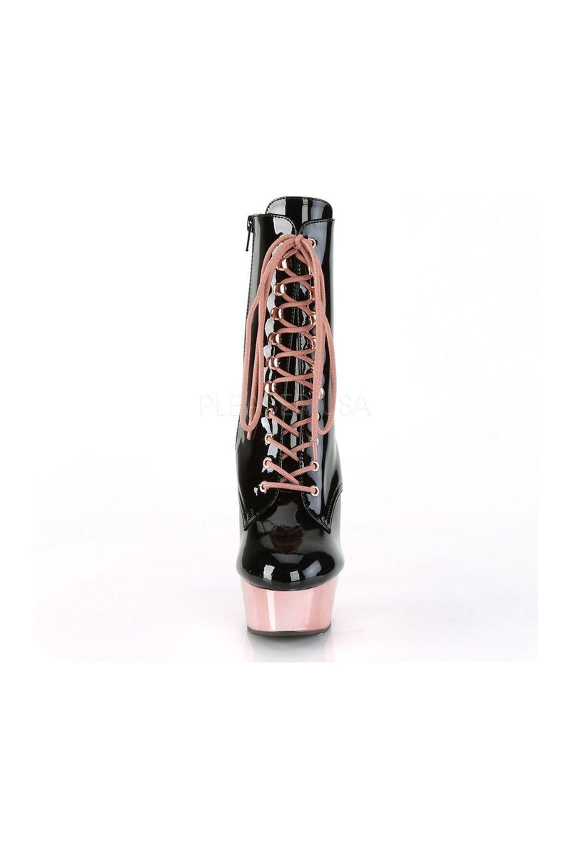 6" (152mm) Heel, 1 3/4" (45mm) Platform Lace-up Front Ankle Boot w/ Interchangeable Shoe Lace (Rose Gold & Black), Inside Zip Closure