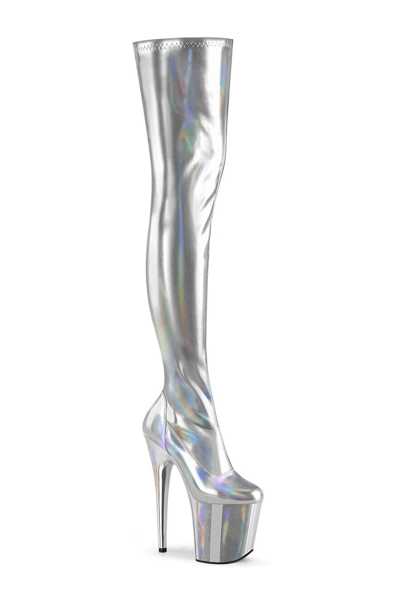 FLAMINGO-3000HWR Silver Hologram Thigh Boot
