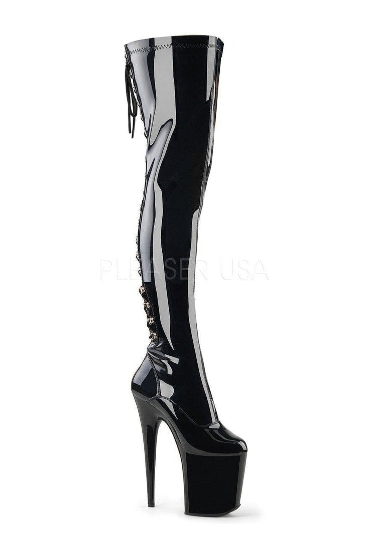 8" (20.3cm) Stiletto Heel 4" (10.2cm) Platform Lace-Up Back Stretch Thigh High Boot & Full-Length Inside Zip Closure
