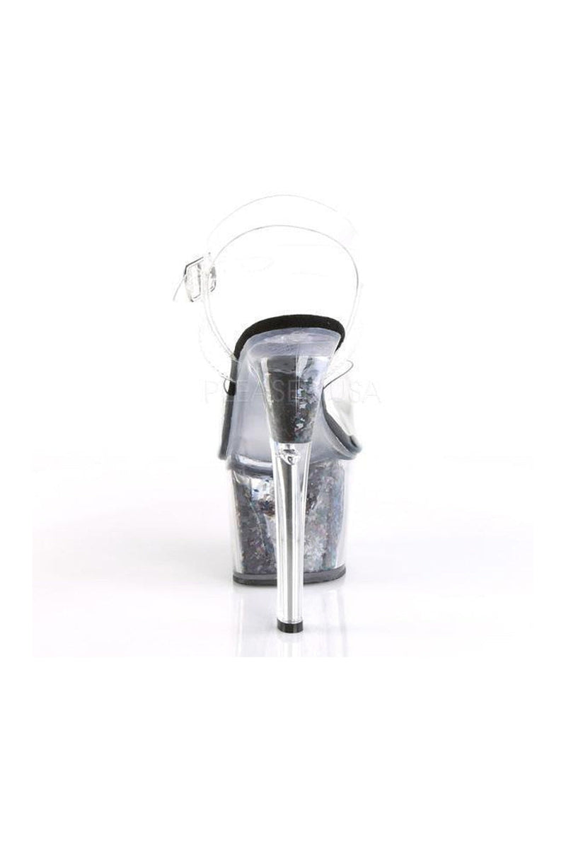 7" (178mm) Heel,, 2 3/4" (70mm) Platform Ankle Strap Sandal w/ Holographic Glitter Filled Platform Bottom