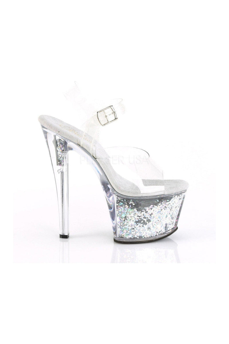 7" (178mm) Heel,, 2 3/4" (70mm) Platform Ankle Strap Sandal w/ Holographic Glitter Filled Platform Bottom