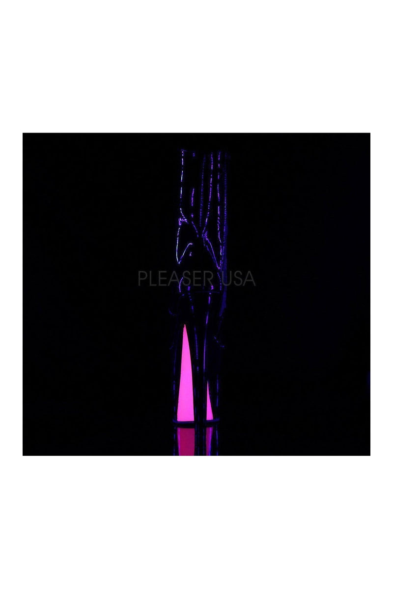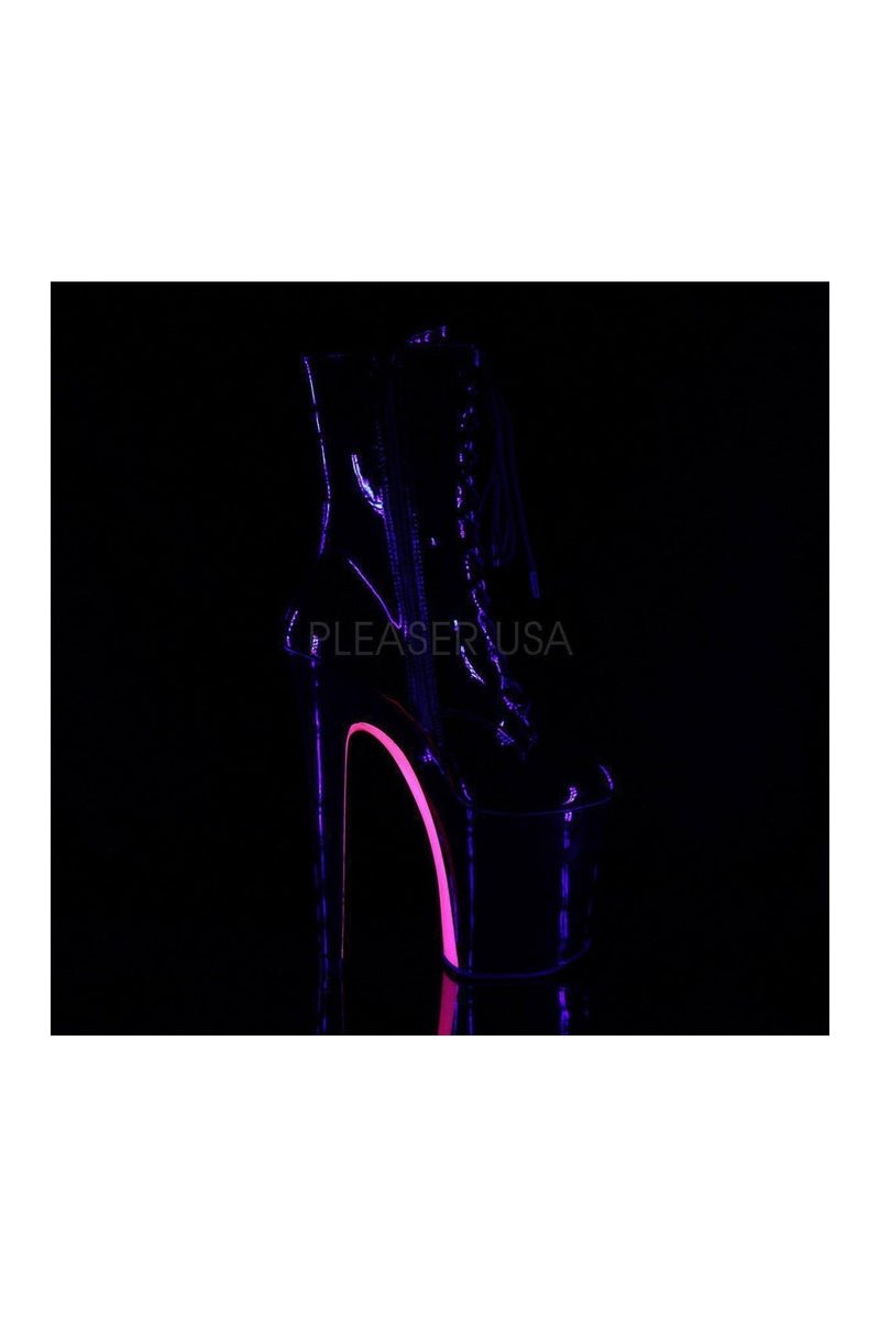 7" (178mm) Heel, 2 3/4" (70mm) Platform Lace-up Two Tone Ankle Boot Featuring Blacklight Sensitive Contrast Color Inner Side of Heel & Underside of the Platform Bottom, Inside Zip Closure