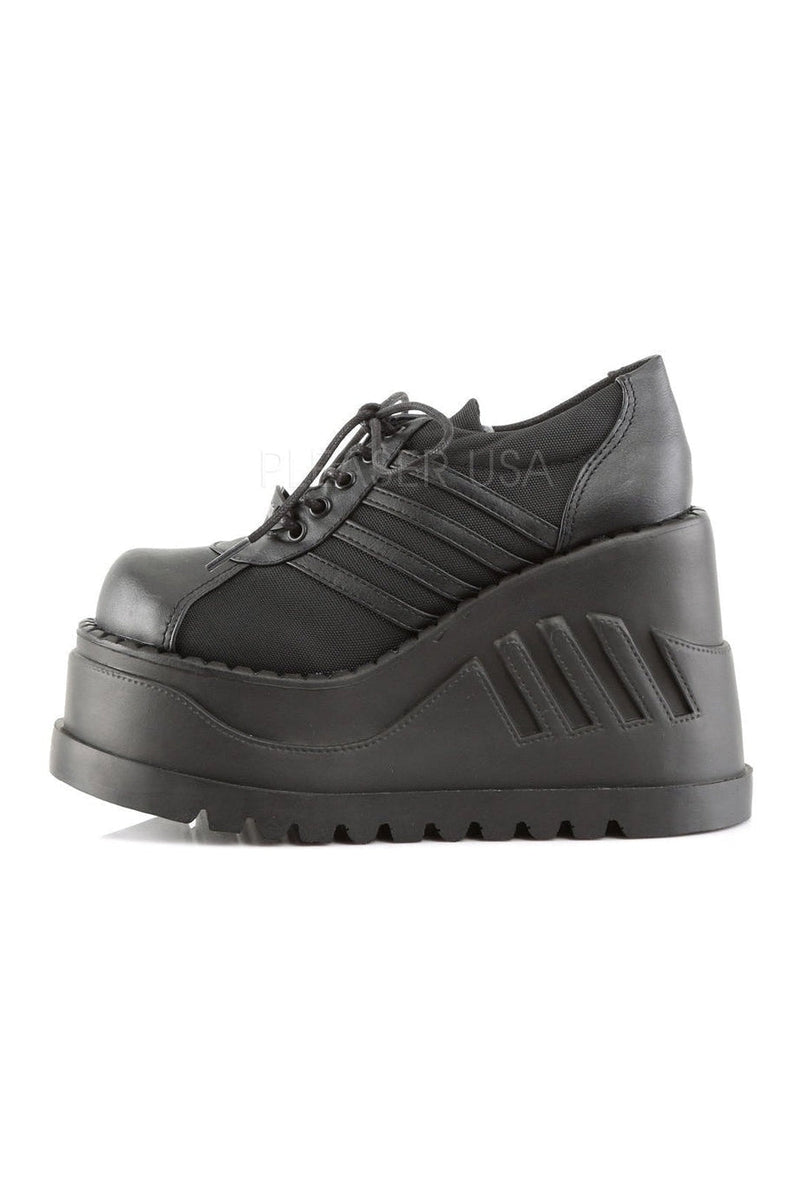 STOMP-08 Demonia Wedge | Black Faux Leather