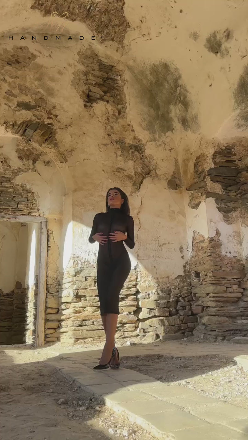 Sheer and seductive, this mesh dress offers a daring glimpse of what lies beneath. With a full-length zipper for adjustable styling, it contours the body and adds an alluring edge to any occasion. Crafted from elastic mesh for a lightweight, breathable fit, it's perfect for making a bold fashion statement.