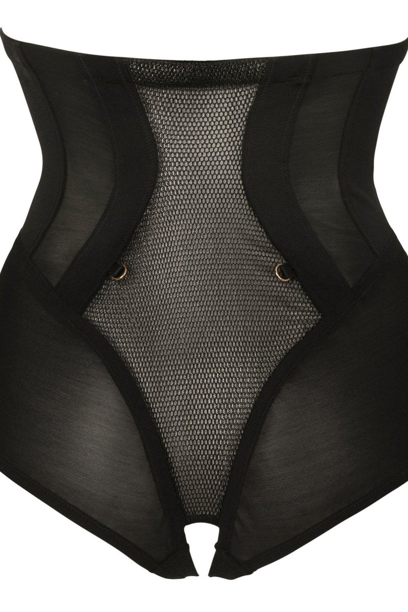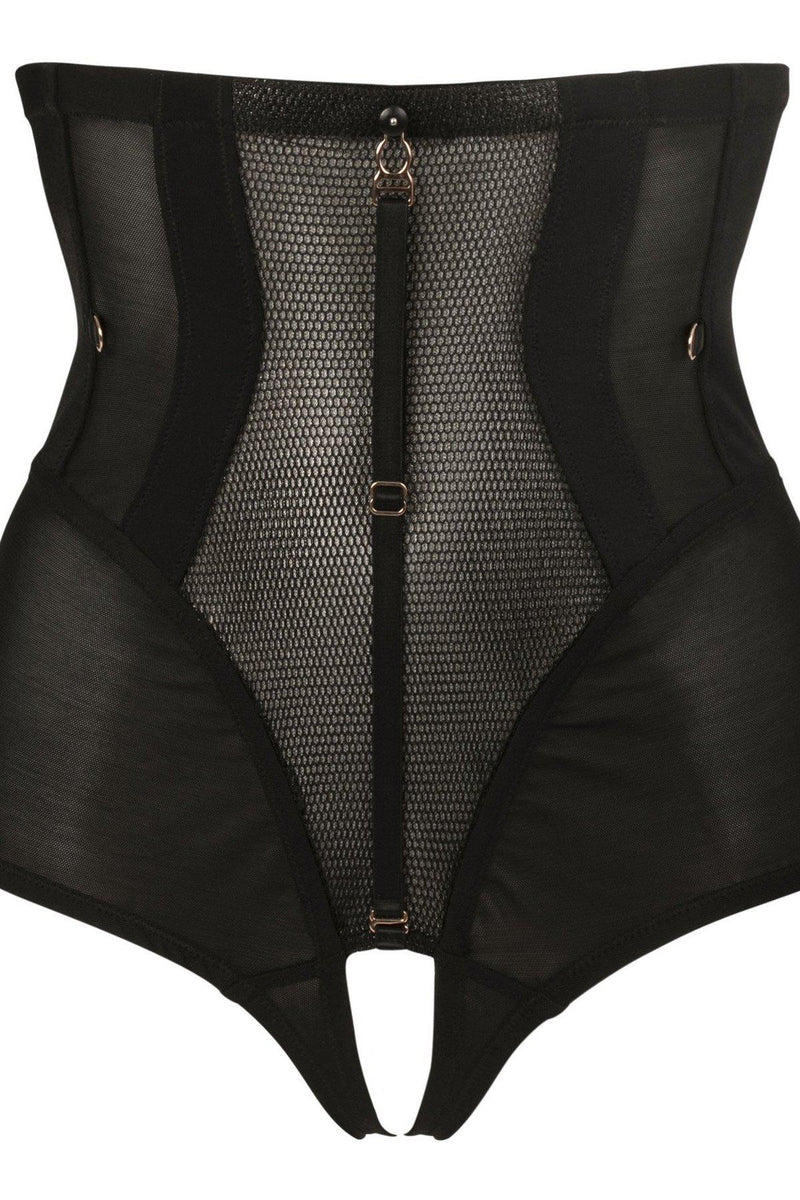 Composed of 16% elastane, this very high waist thong-shaped panty will shape your curves. Like the classic shaping products "love-killing" that you may already wear under your outfits to refine your figure, Charlotte has decided to create a line in its image, to make you feel sexier. The mid front and back are layered with a silver fishnet and black 3D fishnet overlay.