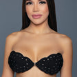 Elevate your look with a touch of sophistication and innovation. Designed for functionality and style, our adhesive bra features a beautiful scalloped edge that adds a delicate, feminine touch to this invisible support system. - Front fabric - Breathable holes - Front metallic fastening hook - Adhesive back Hand wash with mild soap in cold water/ air dry/ do not use powder, moisturizer, oils, or fragrances near the bust area. WARNING: Do not apply over broken, damaged, or sun-burned skin, if you have trouble removing the pastie, take a hot shower or soak in the bath. Be Wicked Box Packaging 85% nylon 15% spandex