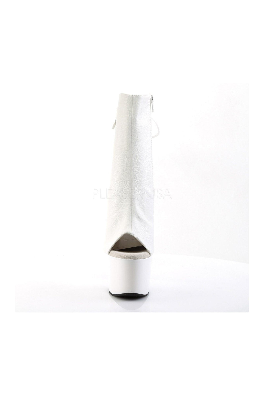7" (17.8cm) Stiletto Heel 2 3/4" (7cm) Platform Open Toe/Stiletto Heel Back Lace-Up Ankle Boot Inside Zip Closure