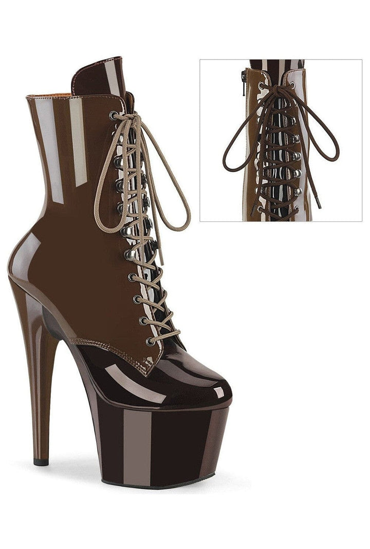 7" Heel, 2 3/4" PF Two Tone Lace-Up Ankle Boot, Side Zip