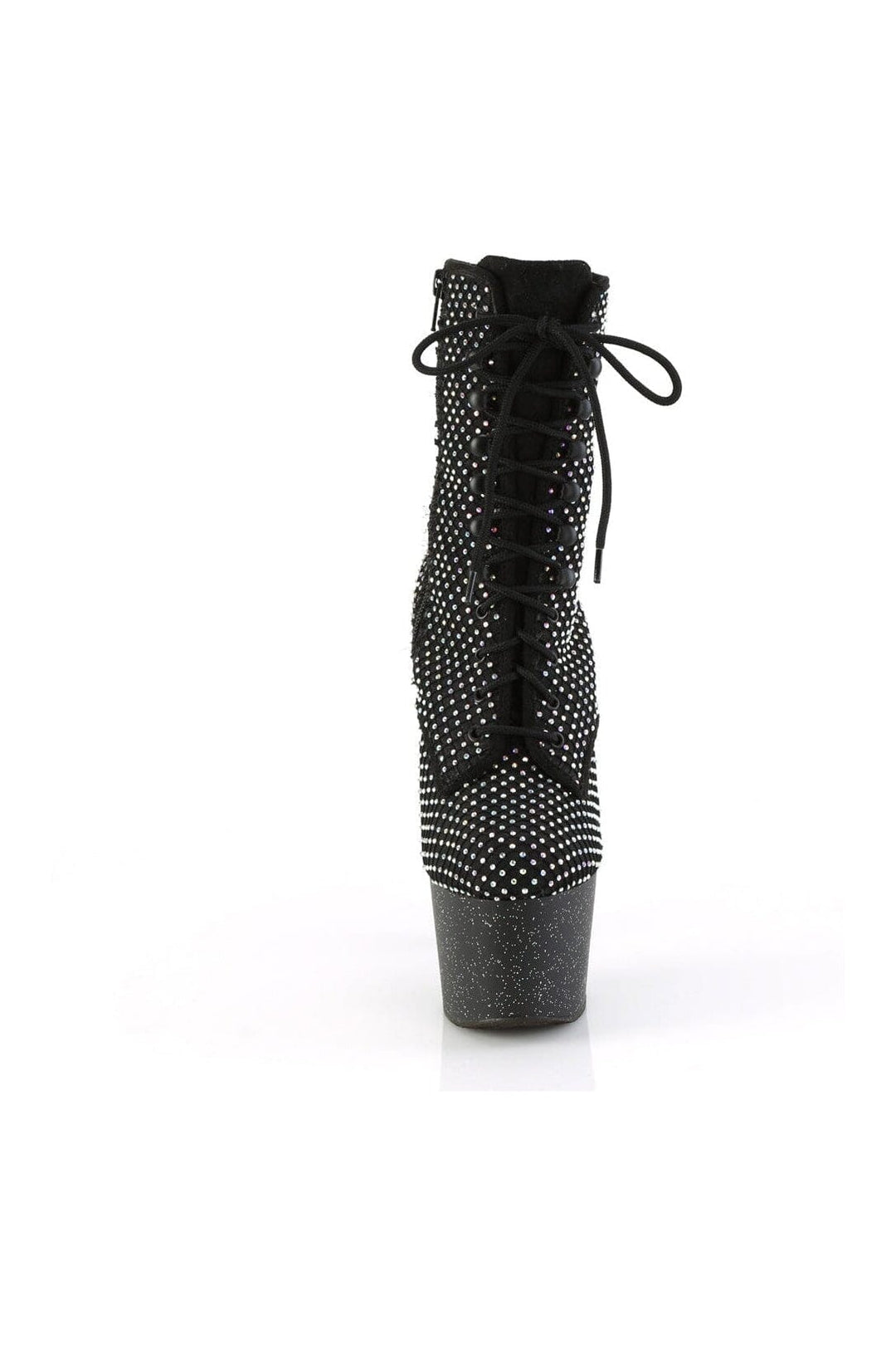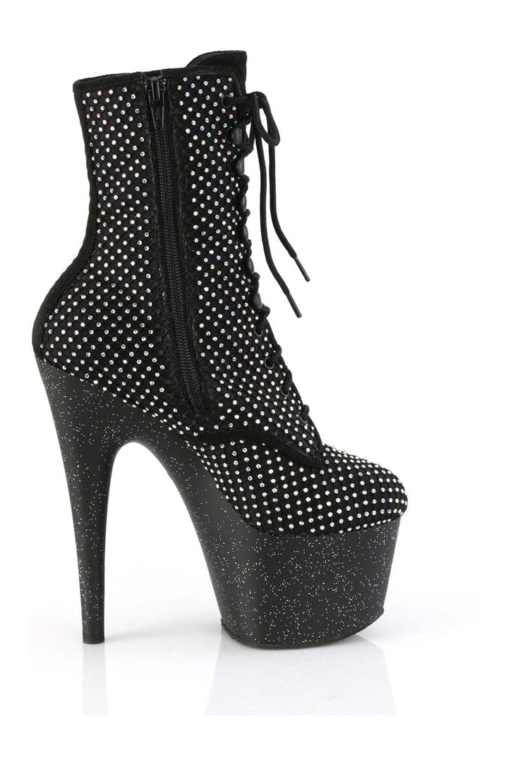 7" Heel, 2 3/4" Platform Lace-Up Rhinestone Mesh Ankle Boot, & Side Zipper